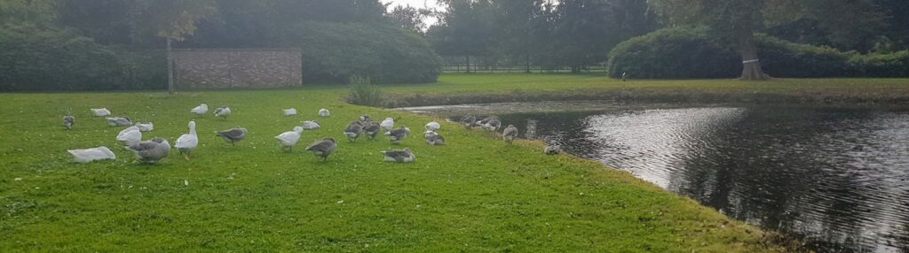 De ganzen waren wat kribbig en gaven aan het eind van het gesprek snaterend blijk van hun ongenoegen.