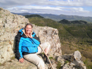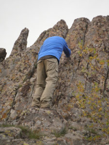 Even later klommen we de rots op, en Frits begeleidde ons met lopen in de richting van zijn steen. We gingen er natuurlijk van uit dat hij een kleintje in de buurt bedoelde. Heel trots, zijn missie was geslaagd, liet hij ons de mooie steen zien die hij gevonden had… een stuk rots in de grond. Ja, en? Nou, jullie willen toch een steen meenemen, dit is een hele mooie. Frits had overlegd en de steen wilde ook wel mee. Ja, alleen zit deze wel helemaal vast in de grond, wij zoeken er één die we kunnen oppakken! Foutje, we moesten wel lachen. Oh, hij leek wel door de grond te zakken van schaamte. Kan gebeuren toch, het is je eerste keer. Volgende keer beter! We deden er onze rituelen, genoten van het uitzicht en reden verder.