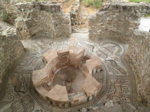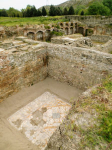 Op 28 april bereiken we het voormalige Stobi, nu alleen nog maar ruïnes van een Romeinse nederzetting, met onder andere een amfitheater en mozaïek (41.553552 / 21.97642), heeft niet Odilia’s belangstelling, voor haar veel te recent.