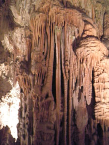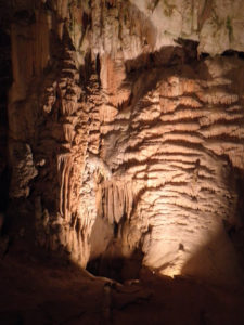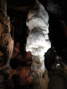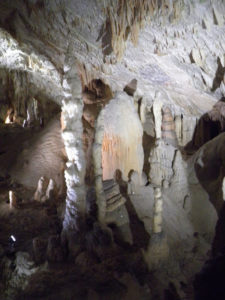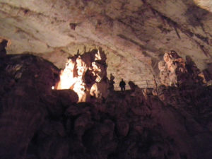 Verder zuidwaarts bezochten we de Adelsberg grot bij Postojna, waar een treintje je binnen reed. Over deze grot liet Odilia ons weten dat er veel natuurwezens in vast zaten, simpelweg doordat ze er in verdwaald waren en de uitgang niet meer hadden kunnen vinden. Of we voor ze wilden zingen en een steen neerleggen, en daarna die steen weer meenemen en ergens in de natuur plaatsen. Nog leuk om te doen ook, zingen in zo’n grot, we zonderden ons natuurlijk wel even af van de groep en zorgden ervoor dat we niet ook zelf verdwaald raakten! Niet zo moeilijk hoor, er was elektrische verlichting, maar natuurwezens nemen dat niet waar.