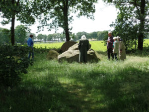 Na een welkome lunchpauze bij Emy begonnen wij aan de HELINGSTOURNEE langs vijf HUNEBEDDEN, waar reeds eerder door Ferry en Margrete aan het wekken van de ingeslapen Deva’s gewerkt was, zoals zij op verzoek en o.l.v. Odilia al door heel EUROPA gedaan hebben. Zij zijn zich door de eeuwenlange onachtzaamheid en verwaarlozing door de mensen van geen opgave meer bewust . Maar in deze tijd van transformatie voor de gehele aarde en de mensheid is het van algemeen belang , deze hoge landschapsgeesten door liefdevolle aandacht te wekken voor de vervulling van een nieuwe opdracht te interesseren. Het gaat niet meer om hun voormalige functie , die zij duizenden jaren voor onze jaartelling hadden : heilige plaatsen,waar de voorouderverering een centrale rol speelde , waarom de gestorvenen enkele dagen na hun overlijden in de afzondering van deze hunnebedden werden neergelegd en door rituelen met hun voorouders en de Goden verbonden, voordat zij elders begraven werden .